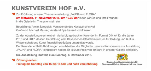 Teilnahme an der Gruppenausstellung „Fauna und Flora“ in der Galerie im Theresienstein | Kunstverein Hof | (JG, K)